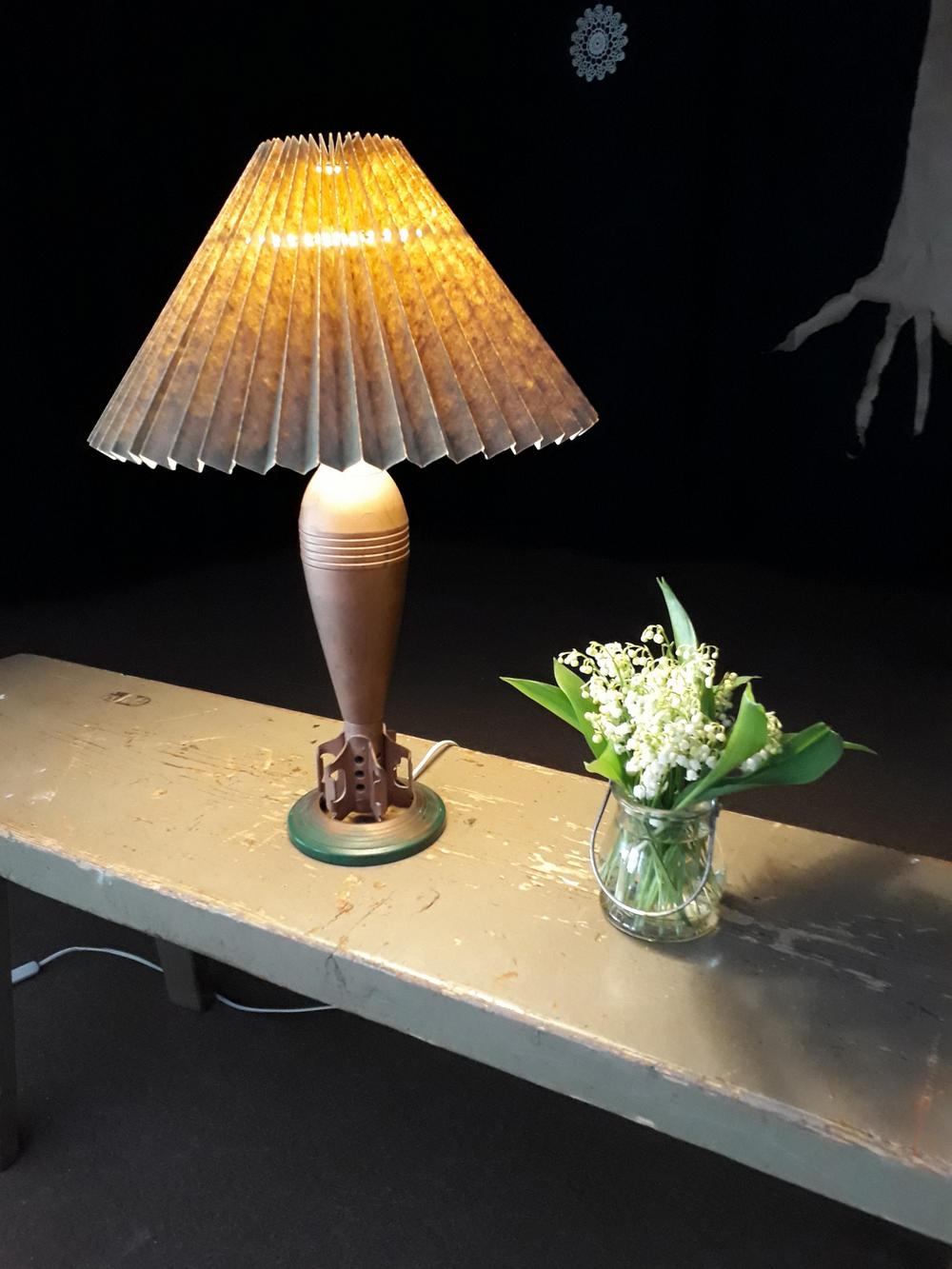 Seuratalon valaisimen runkona kranaatti, joita valmistettiin jatkosodan aikana Haapakoskella